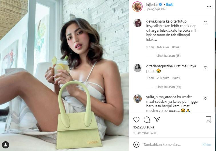 Foto yang diunggah pada Rabu (28/4) itu pun mengundang beragam reaksi warganet di kolom komentar miliknya. Banyak warganet berkomentar miring pada Jedar dan menceramahinya tentang berbagai hal. Mulai dari cara berpakaian hingga sikap menghargai umat muslim yang berpuasa.