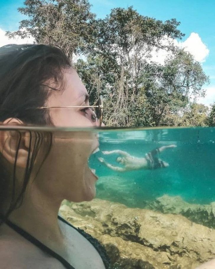Pria yang sedang berenang itu tampak menuju ke dalam mulut wanita tersebut, ya. Padahal hanya karena foto ini diambil dari angle yang pas. Jadi seolah-olah terlihat masuk ke dalam mulut.