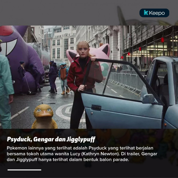 Jika kamu merasa kesulitan melihat keberadaan Pokemon ketika ada di kerumunan, saat melihat 3 jenis moster ini kamu nggak akan kesulitan. Ada Psyduck yang terlihat berjalan bersama tokoh utama wanita, Lucy (Kathryn Newton).