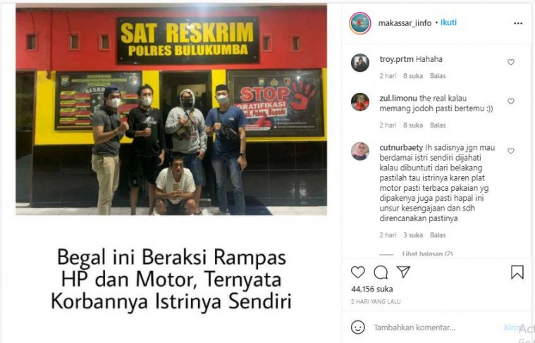 Saat ini Herman masih diamankan di Polres Bulukumba untuk pemeriksaan lebih lanjut. Masih belum diketahui bagaimana reaksi sang istri ketika tahu pelaku begal yang merampas motornya ternyata suaminya sendiri.