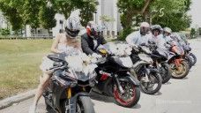 Sama-Sama Penggemar Motor Gede, Pasangan Pengantin Ini Kompak Tunggangi Moge Sangar Ke Resepsi Pernikahan!