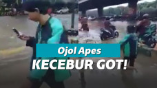 Akibat Terlalu Fokus Pelototin Hape, Driver Ojol Kecemplung Got Saat Banjir