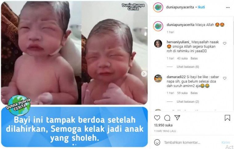 Bayi baru lahir langsung berdoa | www.instagram.com
