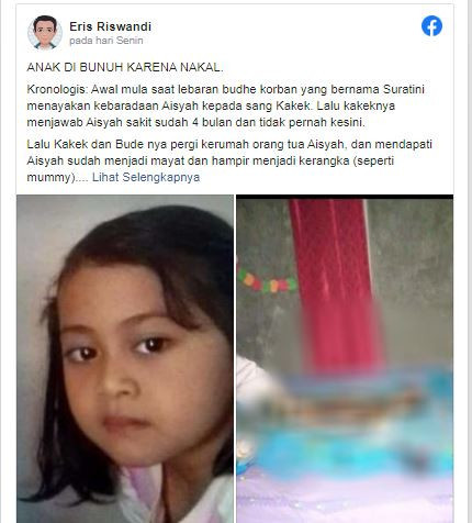 Kejadian ini pun viral usai diunggah pertama kali oleh akun Facebook Eris Riswandi dengan judul “ANAK DIBUNUH KARENA NAKAL”. Unggahan pada 17/5 itu pun menuai beragam komentar warganet. Banyak warganet mengecam perlakuan kedua orangtua Aisyah yang dinilai terlalu bodoh hingga mempercayai praktik ‘rukyah’ semacam itu.