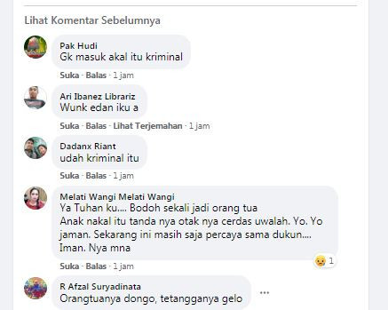 Kasihan padahal anaknya cantik. Orangtua dan si dukun harus dihukum berat ini” tulis Ali Zainal Barcelonistas.