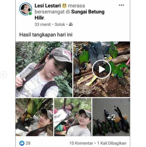 Usai berburu, mereka mengunggah foto hasil burung buruannya tersebut ke akun Facebook Lesi Lestari. Mereka juga mengunggah fotonya berpose memegang burung yang telah mati sambil membawa senapan angin di tangannya.