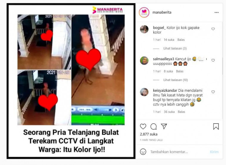 Video pria telanjang itu pun viral dan menuai beragam komentar warganet. Salah satunya seperti pada beberapa komentar di postingan Instagram @manaberita yang memberitakan kejadian ini.
